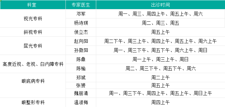 1.19~1.25专家门诊排班表