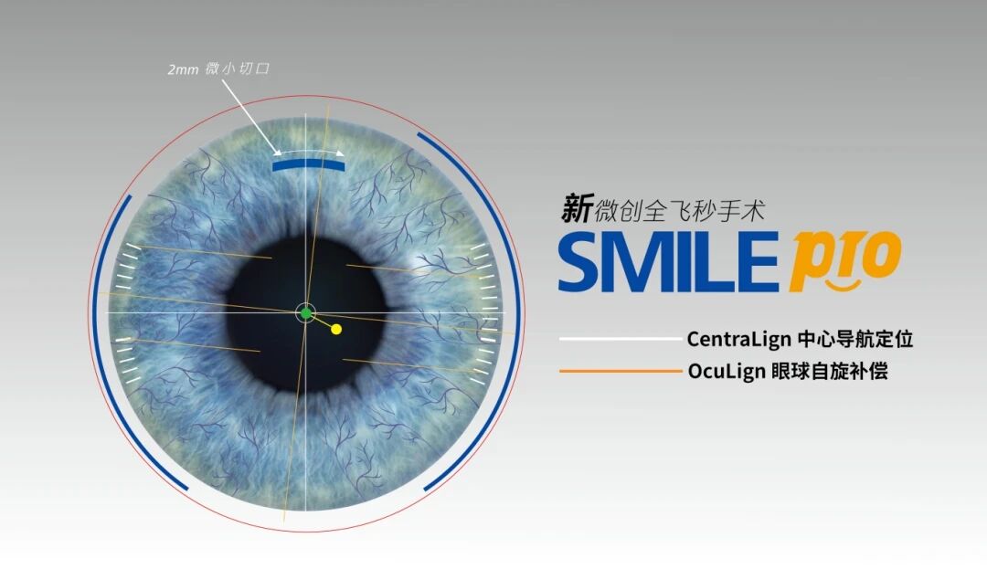 全飞秒手术全程无瓣操作,对角膜神经损伤更小,且因切口仅为2mm,术后角膜生物力学稳定性更优,手术过程中需要盯绿灯,保持良好的配合,现在升级版的SMILE Pro扫描时间只需要10秒钟,同时配有CentraLign智能中心导航定位功能,极大提升了手术的安全性及精准性。