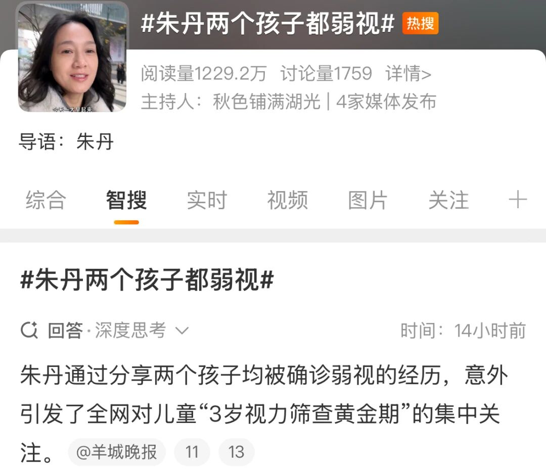 近日,某知名主持人在社交平台分享家中两个孩子先后确诊弱视的经历,引发全网关注。