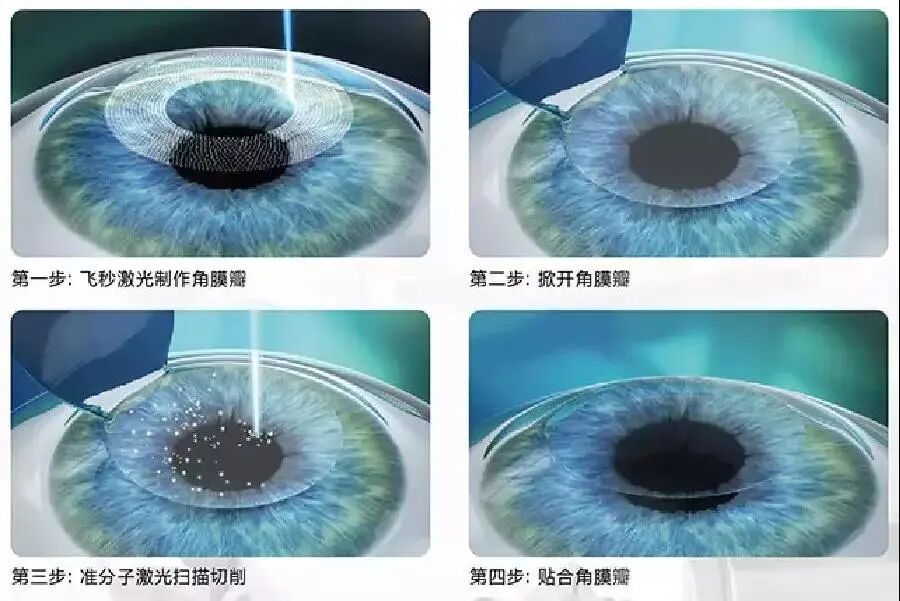该手术方式联合了飞秒激光和准分子激光两台设备,故俗称“半飞秒”。先使用飞秒激光制作一个角膜瓣,然后人工掀开,再用准分子激光在角膜基质层进行切削,之后再把角膜瓣平铺复位回去。手术时间短,两步操作即可完成。
