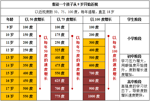 青少年近视以后,度数会以每年75度到100度的速度增长,年龄越小,增长越快,到成年以后度数才会慢慢稳定。