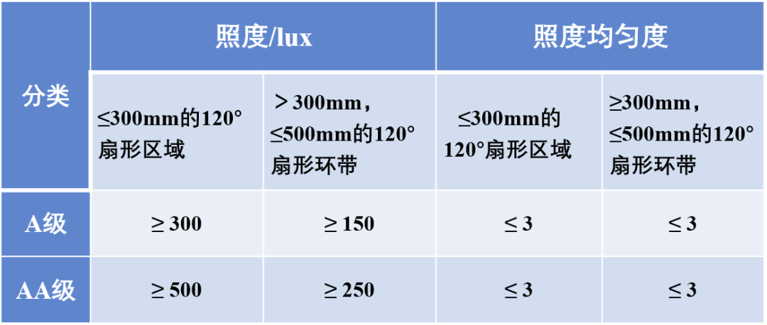 国A级和国AA级就是对照度和照度均匀度设定的标准,从眼健康角度考虑,建议选AA级标准台灯。
