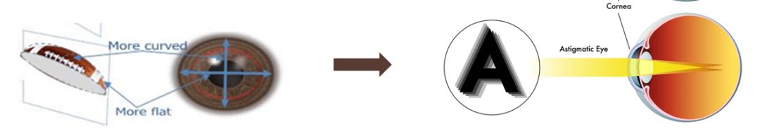 角膜在各方向弯曲弧度不相同(椭球形),外界光线进入眼内后不能形成一个焦点。