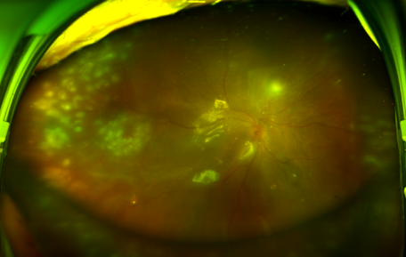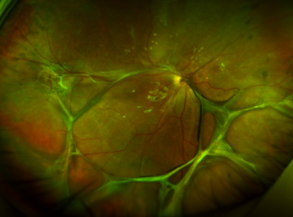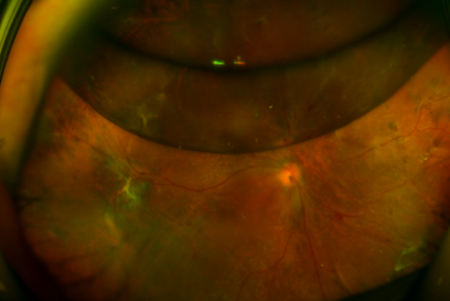 术后1个月复查,冯阿姨后极部视网膜平伏。然而,术后5个月复查时,冯阿姨因视网膜前增殖膜牵拉,再次引起视网膜脱离。