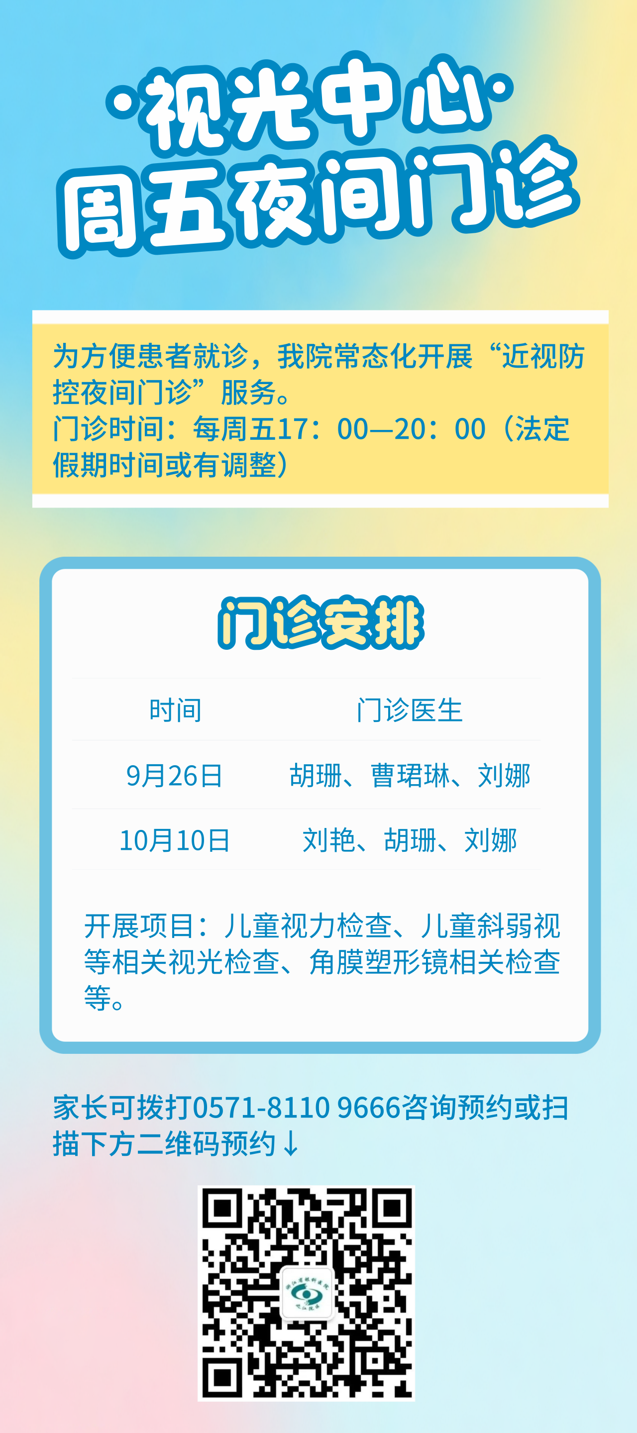 视光中心 | 每周五夜间门诊安排