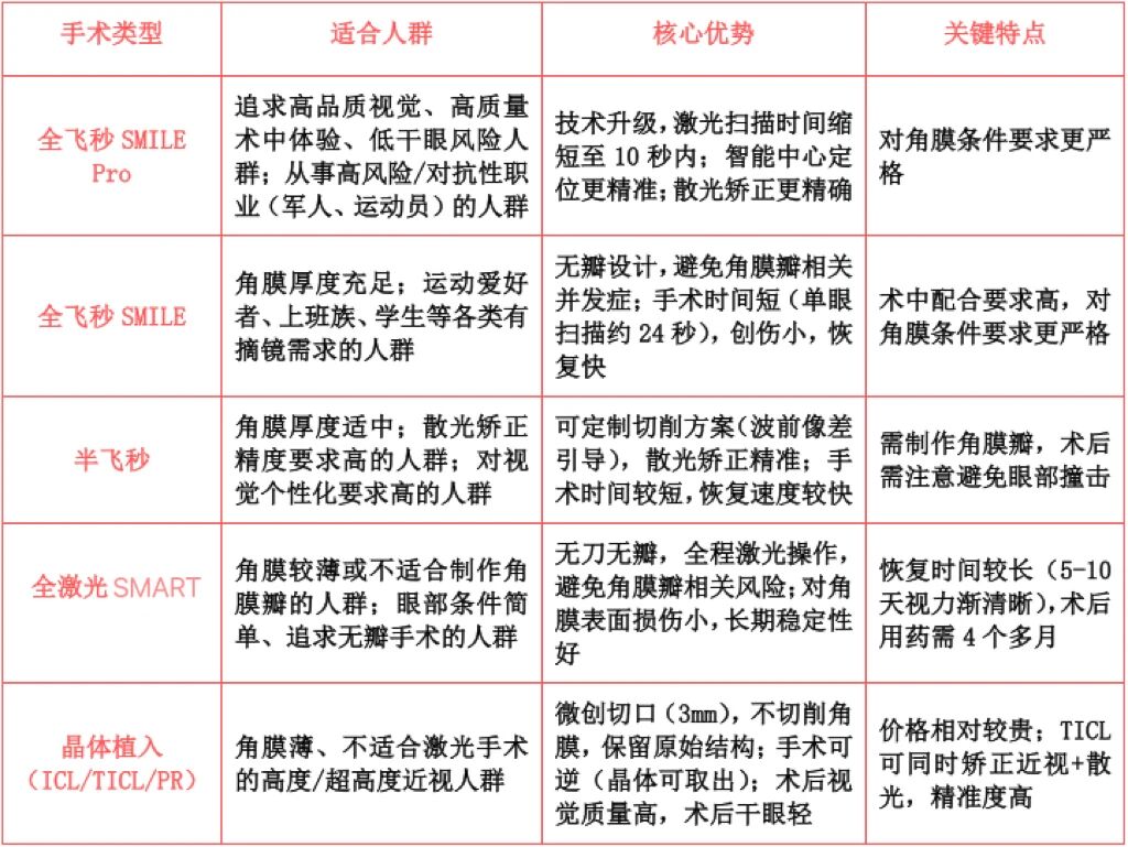 医生将根据检查结果,结合你的用眼需求(如是否经常运动、是否需要长时间看电子屏幕等),来推荐合适的手术类型,确定手术时间。