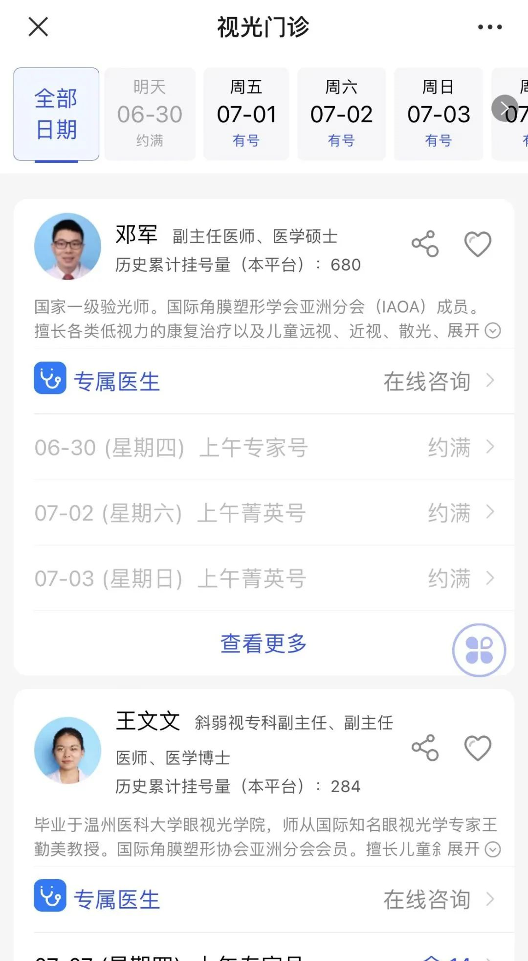 可关注“浙江省眼科医院之江院区”公众号,选择“导诊”—“预约挂号”—“视光诊疗中心”—“视光门诊”,选择合适的时间,预约挂号。