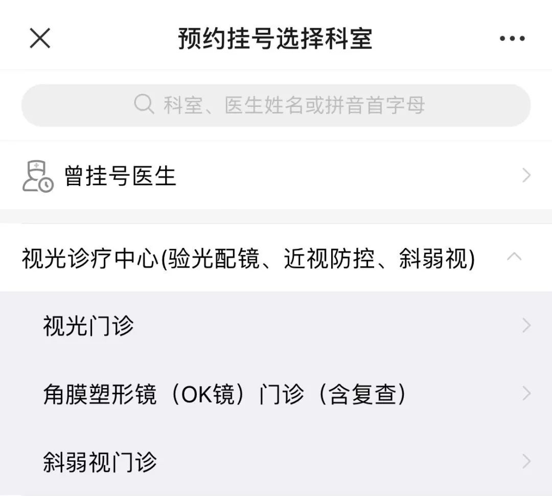 视光门诊下专设了“角膜塑形镜(ok镜)门诊”、“斜弱视门诊”等供大家选择,请根据孩子的实际情况挂号。